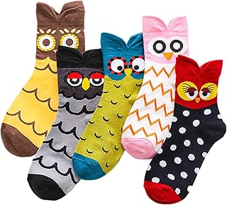 Damen Maedchen Stricken Socken Baumwolle Cartoon Eule Muster Punkte Socken 5 Paare Mehrfarbig 6159