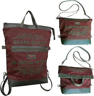 Braun-Armygrün Rucksack Transformer 3 in 1. Wasserdichter, Wasserabweisender Rucksack mit schultertaschenfunktion. Oil-skin. Gewachste Baumwolle. Öko-Leder.Umhängetasche mit Vintage Muster