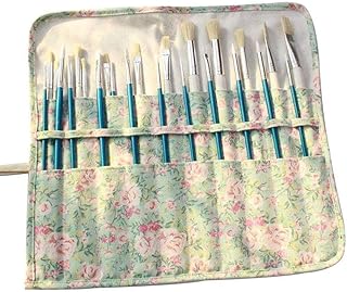 Künstler Pinsel Tasche, 20 Fächern Aufrollen Leinwand Pinseltasche Federmäppchen Pinsel Etui Aufbewahrungstasche Stifterolle für Zeichenstift Aquarell Ölpinsel Beutel, 15 Zoll, Ohne Pinsel (Blume)