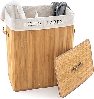 Tatkraft Carolina Großer Bambus-Wäschekorb, Wäschesortierer mit 2 Fächern und Belüftungssystem für Licht und Dunkel, hergestellt aus 100% natürlichem Bambus, faltbarer Wäschesammler mit einem Fassungsvermögen von 105l