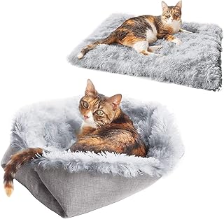CAOQAO Haustier Warmes Pad Plüsch Zwei in Eins Matratze Indoor Portable Faltbare Katze Hundematratze Haustier Schlafunterlage für Katzen und kleine bis mittelgroße Hunde (Grau)