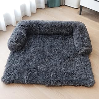 KingMSPG Weiche Plüsch-Hundematte, Sofa, bequeme Hundekissen-Matte, Hundematratze, abnehmbar, waschbar, Hundedecke, Möbelbezug für Hunde und Katzen (rechteckig, dunkelgrau)
