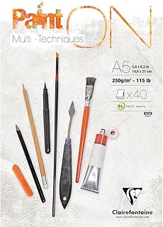 Clairefontaine 96538C PaintOn Block (250 g, 100% extra weißes Zellulosepapier mit leichter Körnung, DIN A5, 14,8 x 21 cm, geleimt, 40 Blätter, ideal für Multitechniken) extraweiß