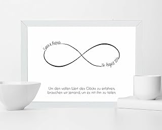 Unendlichkeit! Hochzeitsgeschenk, Geschenk zur Hochzeit, Geschenk zum Jahrestag, Gastgeschenk zur Hochzeit, Liebesgeschenk, Partnergeschenk - personalisiertes Bild & Rahmen mit Name, Datum, Widmung