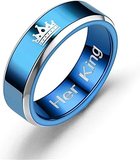 Edelstahl Ringe Partner Blau Krone mit Gravur Her King His Queen Verlobungsring Trauring Herren Damen