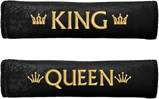 Nashville print factory 1 Paar Gurtpolster Gurtschoner mit Motiv King & Queen Bestickt | Stickerei in Gold mit Krone | Velour | 2 Motive (Motiv 1)