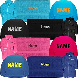 Nashville print factory Kinder Badekappe Bedruckt + Handtuch + Bademantel mit Namen Bestickt | Schulanfang Einschulung Schwimmset Schwimmunterricht