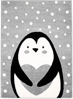 MyShop24h Kinderteppich Teppich für das Kinderzimmer Spielzimmer Pinguin Herz weiß gepunktet in Rosa Beige und Grau, Größe in cm:120 x 160 cm, Farbe:Grau