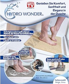 Genießen Sie Komfort, Sanftheit und Eleganz in der Dusche. Mit der schicken Hydro Wonder® Matte für Badezimmer und Dusche ist das sichere Duschen ohne Rutschgefahr gegeben. Somit ist diese Matte nicht nur sicher und rutschfest, sondern auch elegant und verschönert jedes Badezimmer. Die Matte misst ca. 40 x 60 cm, lässt Wasser ganz einfach ablaufen und eignet sich zum Reinigen der Füße. Finde hilfreiche Kundenrezensionen und Rezensionsbewertungen für JEWADO Hydro Wonder® Luxus Anti-Rutschmatte für Bad und Dusche Shower Mat 40 x 60 cm in Beige oder Grau - Original aus TV-Werbung! auf Amazon.de. Lese ehrliche und unvoreingenommene Rezensionen von unseren Nutzern.