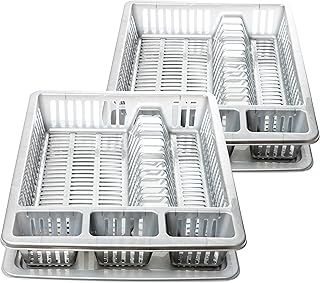 Geschirrabtropfkorb Abtropfgestell 2 Stück XL Kunststoff 46 cm x 37 cm Weiß oder Grau, Farbe:Grau