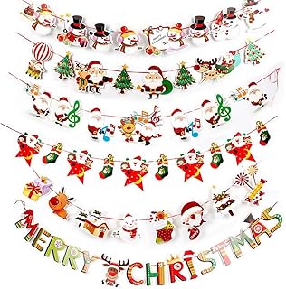 SERWOO 6 Stück Merry Christmas Girlande Weihnachten Girlande Banner Wimpelkette Papier Girlande Weihnachtsgirlande Weihnachtsmann Schneemann Weihnachten Deko (2.7M / Jede Girlande)