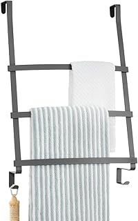 mDesign Türgarderobe – Handtuchhalter ohne Bohren für das Bad – Handtuchleiter zum Hängen mit 3 Stangen und 2 Haken – auch als Flurgarderobe geeignet – dunkelgrau