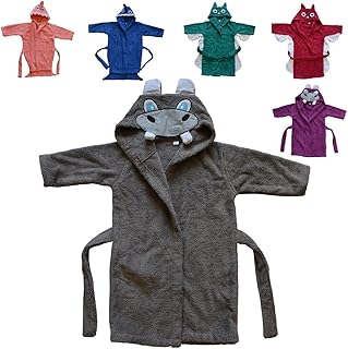 Twinzen - Kinderbademantel Mädchen oder Junge - 100% Baumwolle Ohne Chemikalien OEKO-TEX® - 2 Taschen, Gürtel, Kapuze mit Ohren