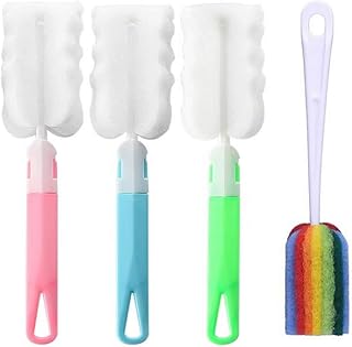 Dusenly 4pcs Flaschenbürsten-Reiniger-Schwamm-Schalen-Bürsten mit langem Handgriff-Küchen-Peeling für Baby-Flaschen-Kaffee-Tee-Glasschalen-waschende Reinigungs-Werkzeuge