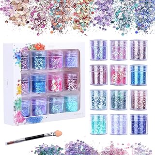 Liuer 12PCS Nagel Glitzer, Glitzer Basteln Sequin Nagelkunst Nageldesign Nägel Nails Zubehör Glitzerpulver Nail Art für Gesicht Nägel Augen Haare Körper Kosmetik für Musik Festival Masquerade Party