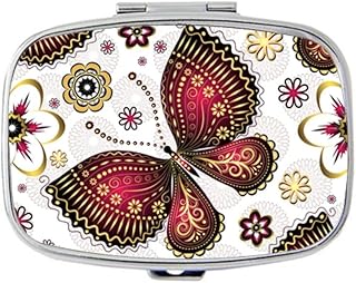 Tablettendose / Tablettendose mit Schmetterlingen und Blumen, Vintage-Stil, personalisierbar, rechteckig, für Medikamente und Vitamine
