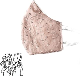 1 KINDER Mund- & Nasenmaske - Kinder Gr. M - versch. Farben, bestickt Blumen - 100% Baumwolle 2-lagig Waschbar Handgenäht - Kommunion Hochzeit Taufe Konfirmation (Altrosa, bestickt Blumen)