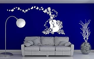 Wand Aufkleber/Wandtattoo ***Musik- Dekorative Gitarre mit Noten, Blumen und Schmetterlingen*** - (Größen und Farbauswahl)