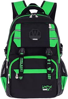 Unisex - Kinder Rucksack Schulrucksack Wasserfester Rucksack für Jungen Mädchen Schüler Daypack Schultasche Grundschule Backpack Großen Kapazität (Grün/Schwarz-01)