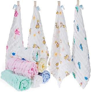 HyAdierTech Baby Waschlappen, 10 PACK Baby Musselin Waschlappen Baby-Feuchttücher 100% Baumwolle Baby Handtuch Musselin Waschlappen weiche Handtuch für Kinder, 30 * 30 CM