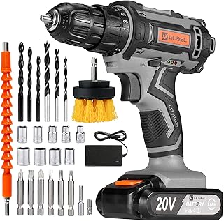 OUBEL Akkuschrauber/ 20V Akku Bohrschrauber, 42N.m, 3/8 Zoll Spannfutter, 2 variable Drehzahlen, 18 + 1 Drehmomenteinstellung, 1H-Schnellladegerät, 2000-mAh-Batterie, mit 22 Stück Bohrer-Set