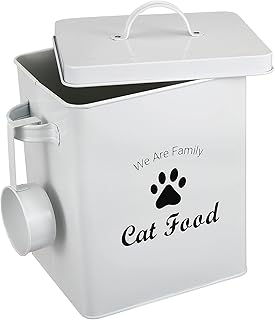 Brabtod Deckel mit Gummidichtung, Sicherheitsbehälter für Haustiere mit Schaufel für Katzen oder Hunde, weiß, beschichteter Karbonstahl, luftdichter Lebensmittelbehälter, Katze