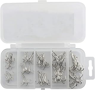 Magic&shell Angelhaken, 5 Größen, starker Karbonstahl, für Salzwasser, Süßwasser, Weiß, Nickel, 50 Stück