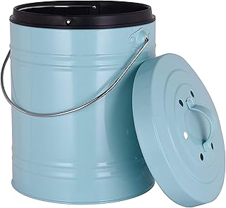 LALASTAR Kompostbehälter für Küchentheke, kleiner Metall-Komposteimer innen Küche versiegelt mit Deckel für Lebensmittelabfälle, Arbeitsplatten-Kompostbehälter, weiß, 1 Gallone