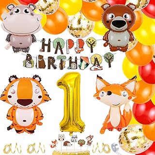 1. Geburtstag Junge Mädchen Deko,Thinbal Geburtstagsdeko 1 Jahr Junge ,Waldtiere Kindergeburtstag Deko mit Luftballon 1. Geburtstag Tiere Happy Birthday Girlande,Folienballon,Latexballon für Kinder