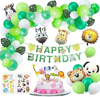 Dschungel Geburtstag Dekoration Jungen Safari Geburtstagsdeko, Kindergeburtstag Deko Safari Tier Happy Birthday Dekoration Dschungel Ballons Waldtier für Jungen Geburtstag Mehrweg